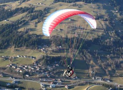 Ein völlig neues Fluggefühl erwartet den ParaAlpinisten bei einem Flug mit einem Mini Gleitschirm. Diese Gleitschirme sind keine Speedglider oder Speedrider wie sie auch genannt werden, sondern normale Gleitschirme im Kleinformat. Der Österreichische Hersteller Airwave hat sich mit dem 17,5 m² großen "Alpine Extrem" (15 m² projiziert) einen Platz in der noch kleinen Marktlücke gesichert. Ich flog den Schirm mit einem Startgewicht von100 kg. Der Start ist auch bei einer hohen Flächenbelastung kein Problem. Der Flügel kommt, bedingt durch die kürzere Beleinung sehr schnell über den Piloten, hat aber trotzdem keine Tendenz zum Überschießen. Die Laufstrecke ist nicht sehr viel länger und die Abhebegeschwindigkeit etwa 5 km/h höher wie bei einem Schirm in der bisher gewohnten Größe.